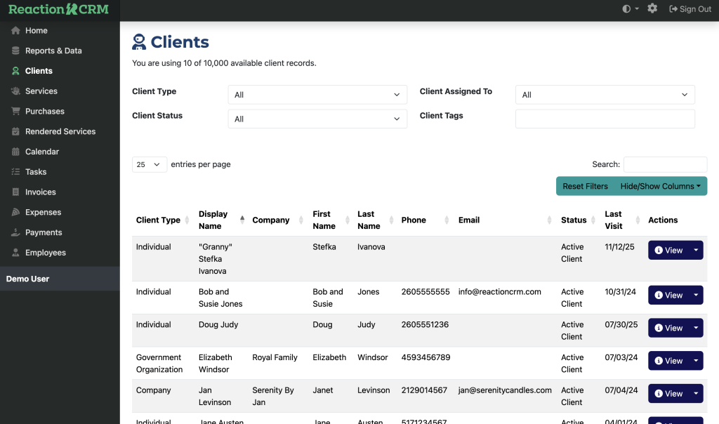 With the client listing, you can easily filter and search to locate the right client. Customize the listing according to your preferences, showing only the information that you need.