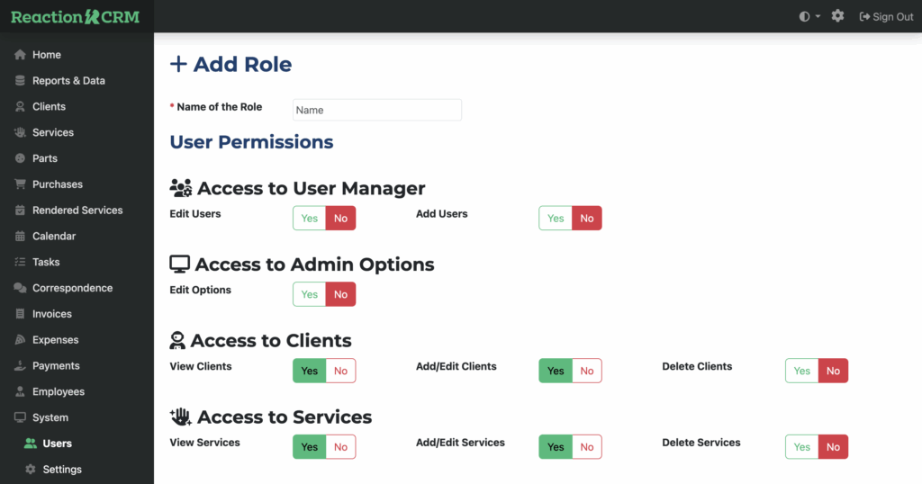 Set, change, and remove access rights for each user. ReactionCRM gives you complete control to choose what information each user can view, edit or delete in the system.